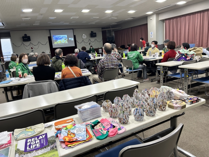 会の最後には、先月亡くなられたスタッフ・加藤玲子さんの追悼動画を観て、何事も楽しむことを信条としていた天国の加藤さんに向けてメッセージを送り、偲びました。